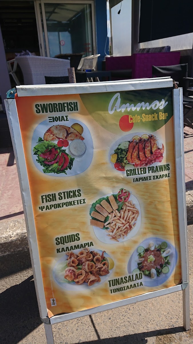The sunny, inviting ambiance of Ammos Cafe-Bar is complemented by its prime location, offering breathtaking views of the Aegean Sea, especially at sunset. Whether you're lounging on the outdoor terrace or enjoying the cozy indoor seating, the restaurant provides a relaxing space to unwind while savoring delicious food.